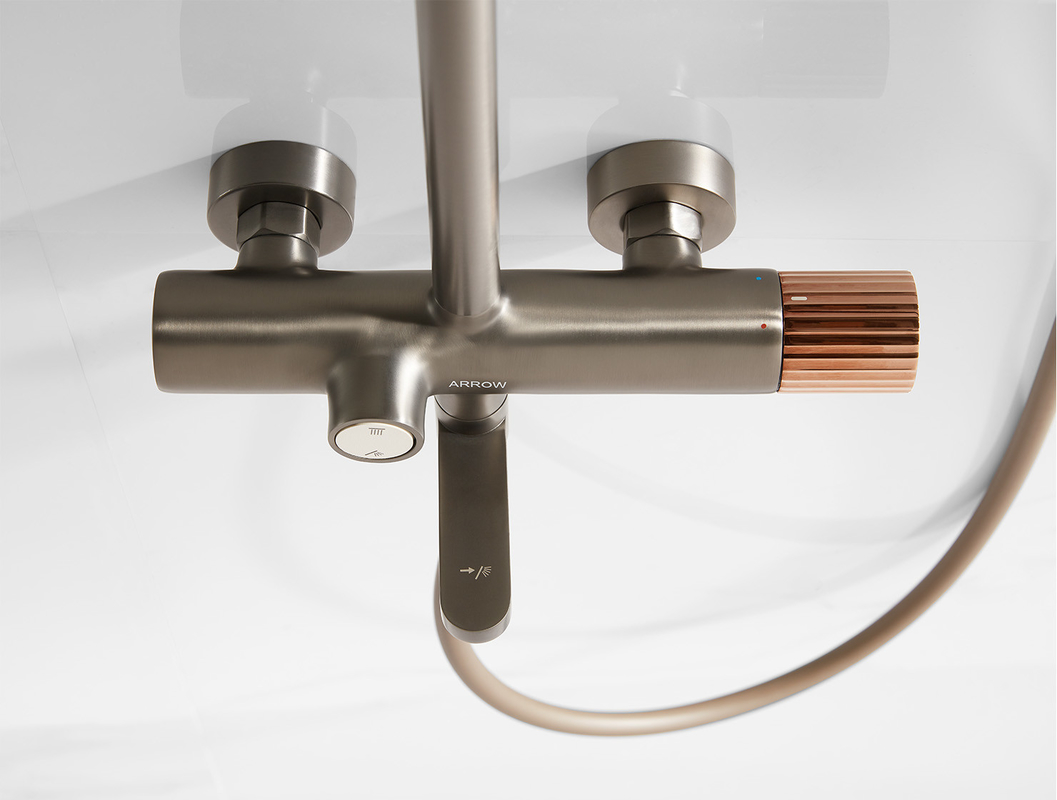 ชุดฝักบัว ทองแดง ปืนสีเทา ฝักบัว ห้องอาบน้ำ ฝักบัวติดผนัง หัวฝักบัวสายอ่อน พร้อมแถบเลื่อน