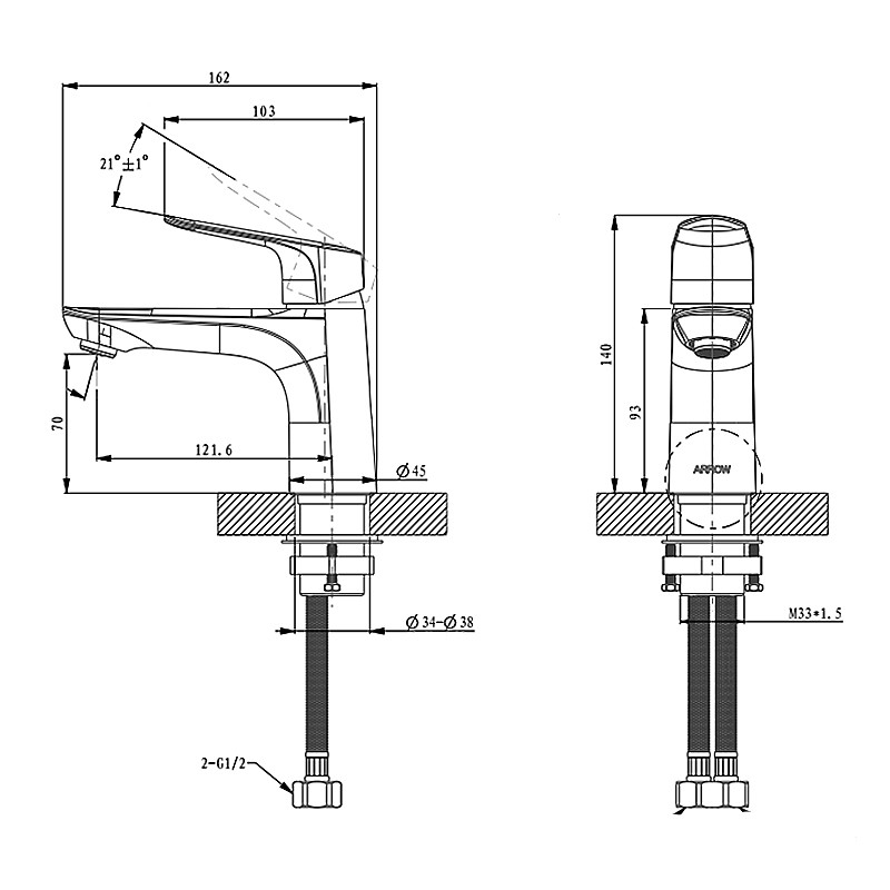 ARROW ก๊อกผสมอ่างล้างหน้า ทองเหลือง ผสมน้ำร้อนและน้ำเย็น Tap
